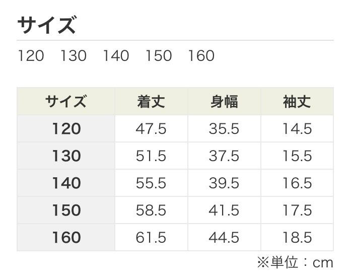 ※160(キッズサイズ)です。お間違いないようご確認ください。